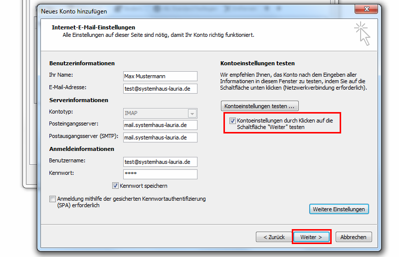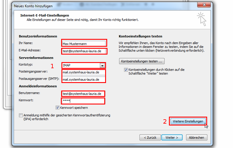- Posteingangsserver: mail.systemhaus-lauria.de