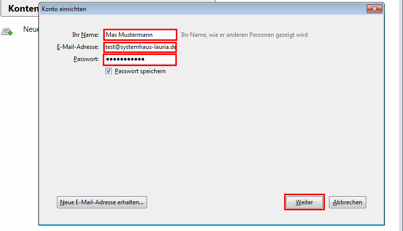 - Passwort: Tragen sie bitte hier ihr E-Mail-Kennwort ein.